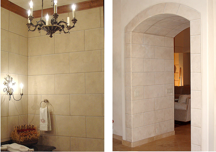 painted "set limestone" trompe L'oeil in powder room.